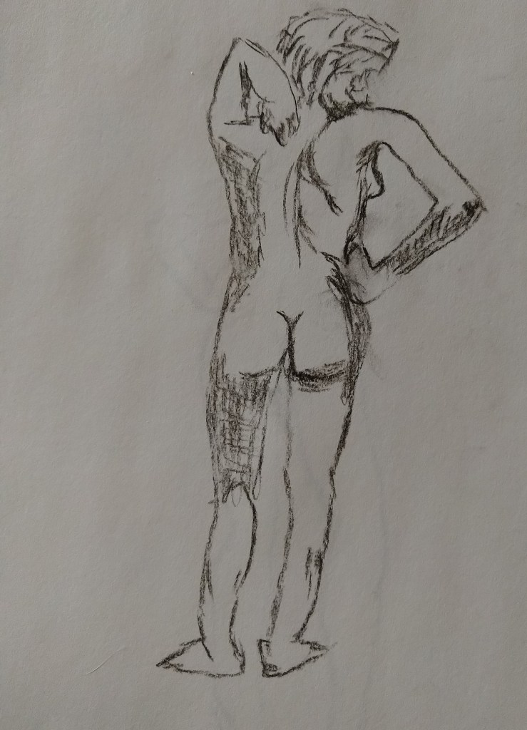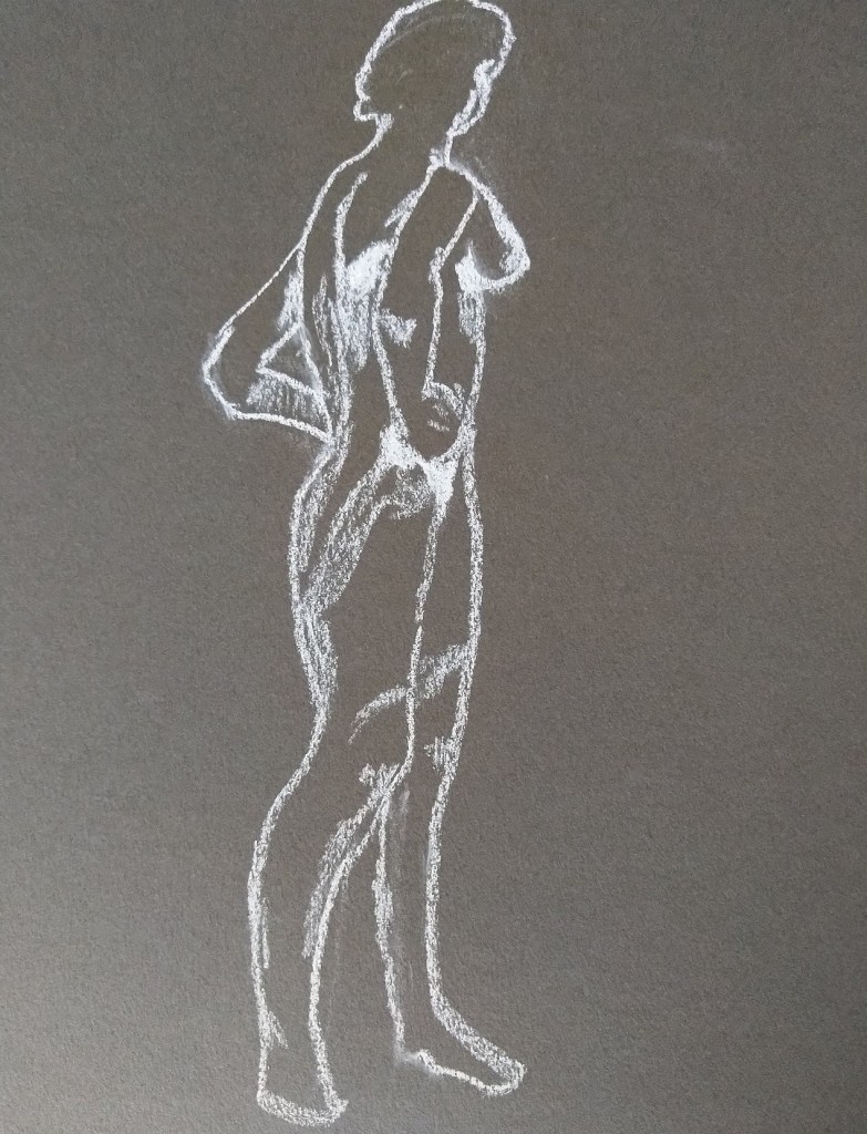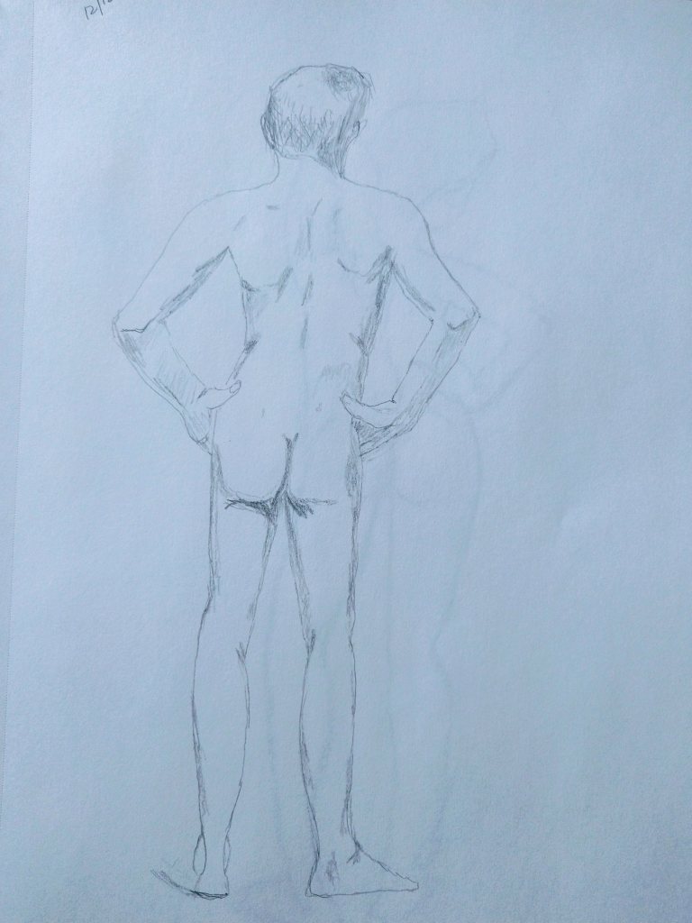 Some of the drawings I’ve done of the human figure, referring primarily to books by Giovanni Civardi on drawing the nude, and the human figure. Compressed charcoal (upper left), graphite (upper right) and white Conte crayon on Strathmore gray-toned paper (bottom right).