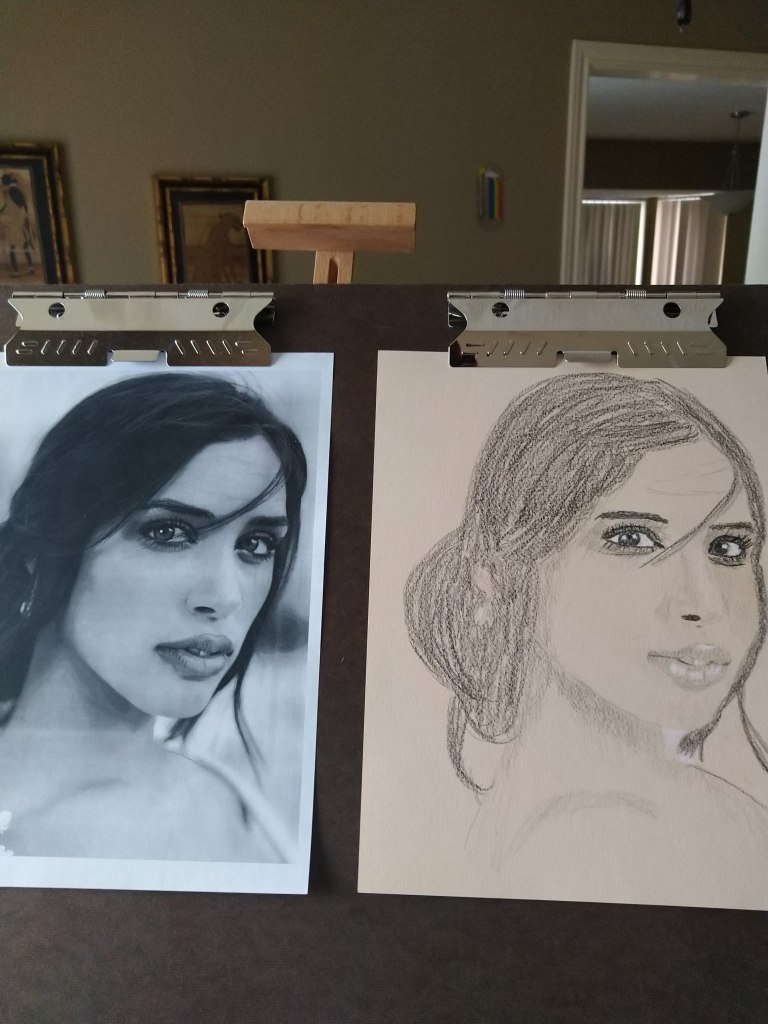 Here’s another portrait study from an Unsplash photo. Again, shading is a major issue. I also don’t have the shape of the subject’s chin and cheeks quite correct. The mouth is fairly decent, but not shaded dark enough.