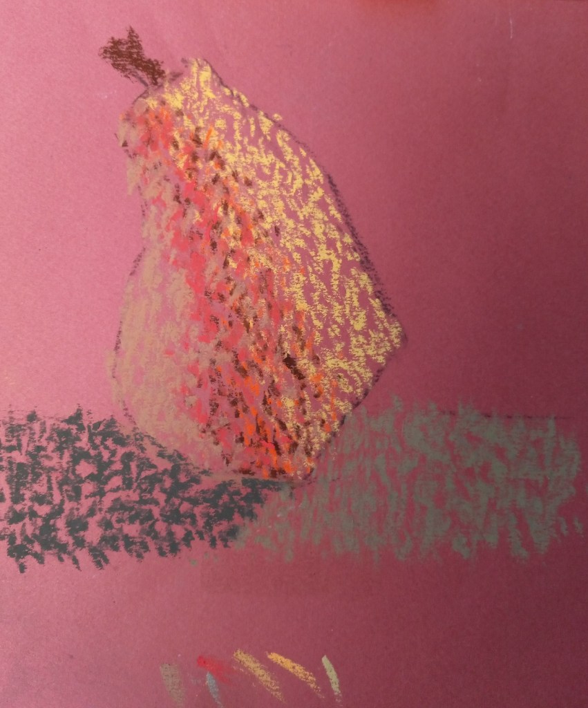 Since I’m still focused on pears and different mark-making styles, I decided to use stippling on a sheet of Terracotta tinted Mi-Teintes paper.