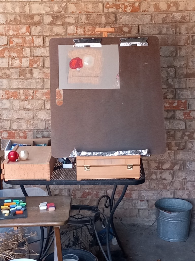 I took a photo of the entire easel scene; you can see the reference objects on the left. I also took a photo of the ornaments, and the color palette I used.