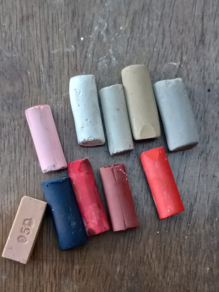 I was painting from life rather than the photo reference; the photo looks somewhat bluer and I was standing at a slightly different position taking the photo than when I was actually pasteling.