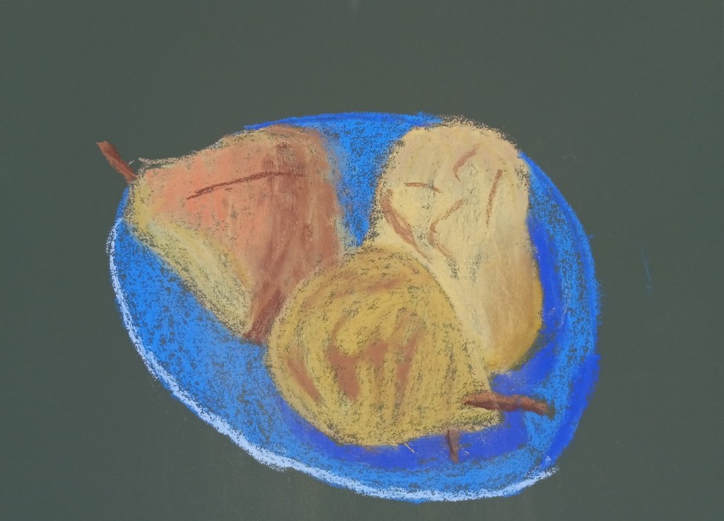 I did this work from life, using a sheet of Colourfix Original paper in Dark Green Leaf shade. I did not do any underpainting, and was using Richeson Hand-rolled and some of my new Mount Vision pastels. The Richeson pastels, to my mind, really work well on this paper, especially if I don’t do an underpainting in NuPastel.