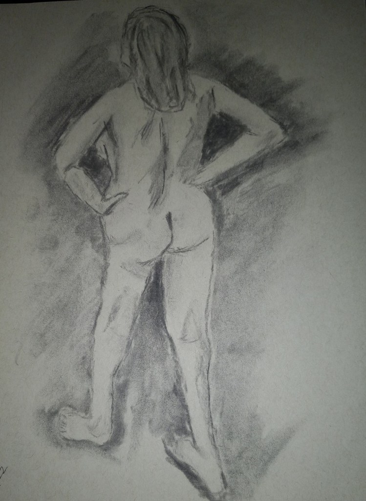 This is another piece I did, based on the ArtTutor.com class “Studies in Charcoal” by Joann Boon Thomas. Same vine charcoal, and toned paper. This reference photo was one of the instructor’s based on a life drawing she did. I need to find a life drawing class myself, although with Covid, it might be an online/Zoom version.