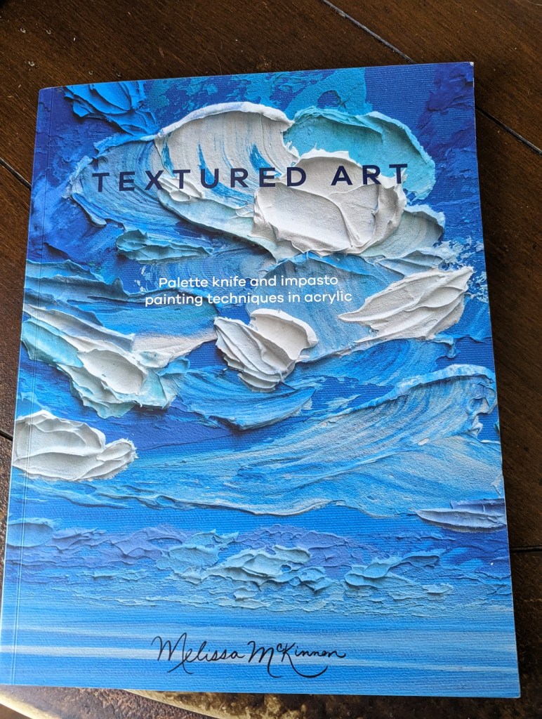 Using the book Textured Art by Melissa McKinnon and a 16×20 wood panel (gessoed with clear gesso), I followed along the demo of a desert scene. For the project, as directed, I used acrylic inks from Liquitex and Daler-Rowney FW acrylic inks, Golden’s High-Flow acrylic paint, and modeling paste and crackle paste.