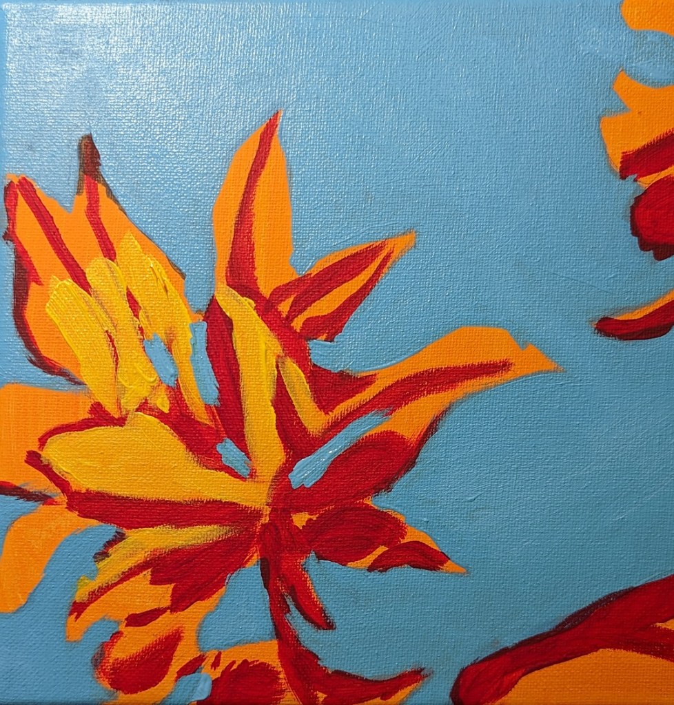 Negative Spaces Study: Complete June 14, 2023June 13, 2023 | cathmary1030 Here is the completed work. The orange I left untouched from the initial wash of color, adding alizarin crimson and yellow for the brighter and darker parts of the leaves. Share this: Click to share on X (Opens in new window) X Click to share on Facebook (Opens in new window) Facebook Like Loading... Related