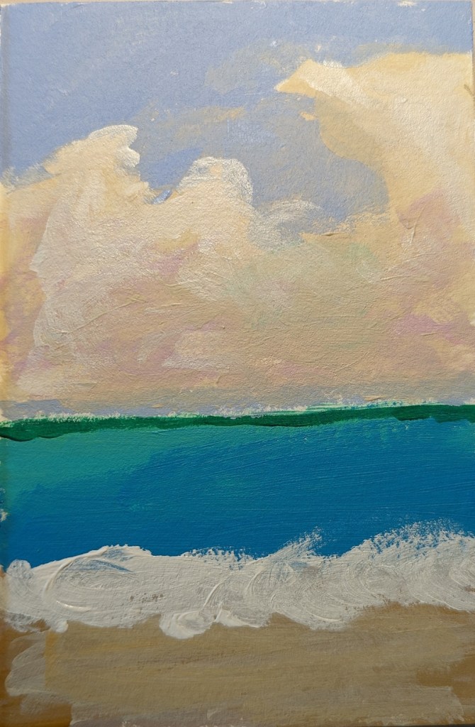 This painting was a quickie, from imagination, after having browsed through images — photos and paintings — of the sea and sky.