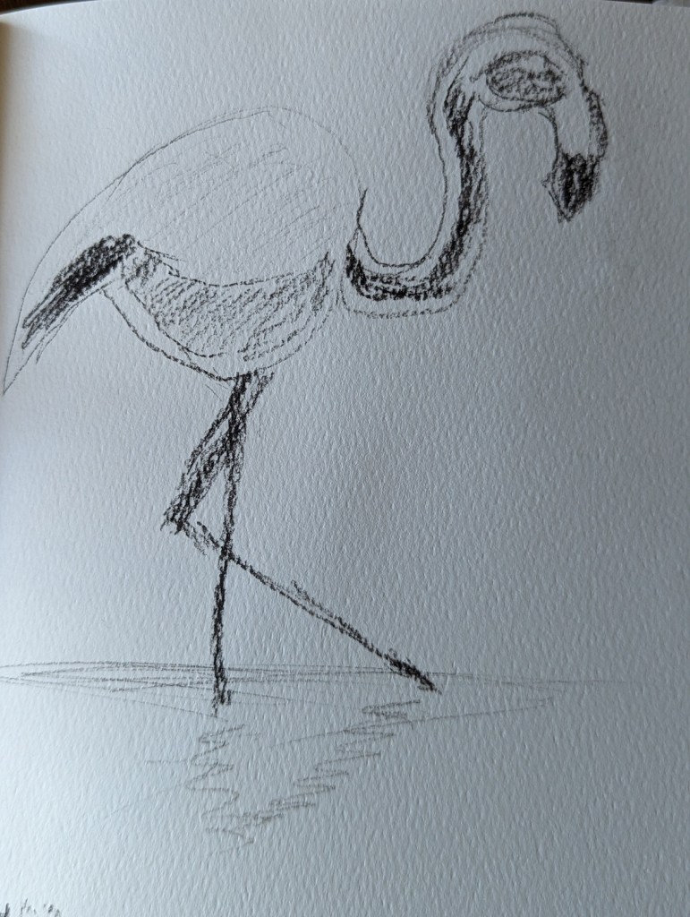 Charcoal Sketch — Paint Prep — Flamingo July 16, 2023July 7, 2023 | cathmary1030 I did this charcoal pencil sketch of a flamingo in my Arteza sketchbook. My intention is to paint it at some point. Share this: Click to share on X (Opens in new window) X Click to share on Facebook (Opens in new window) Facebook Like Loading... Related