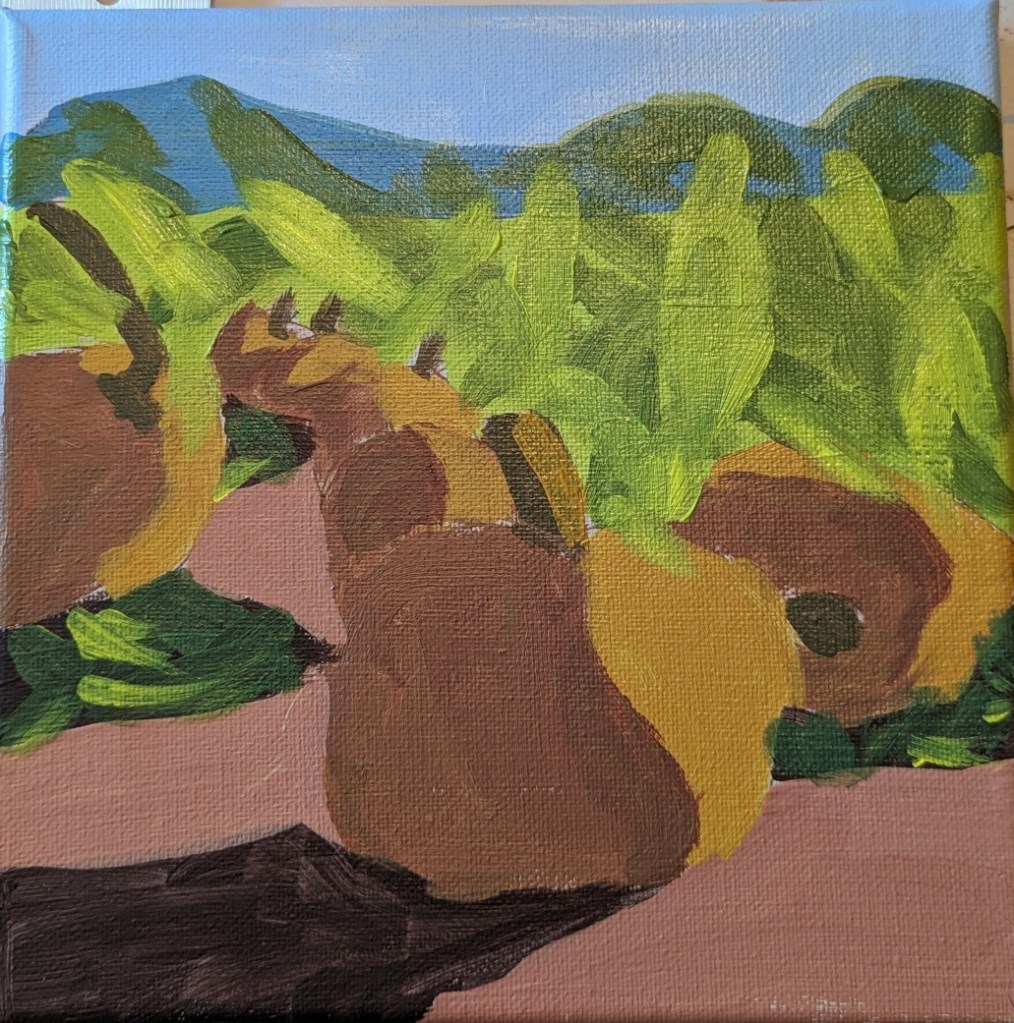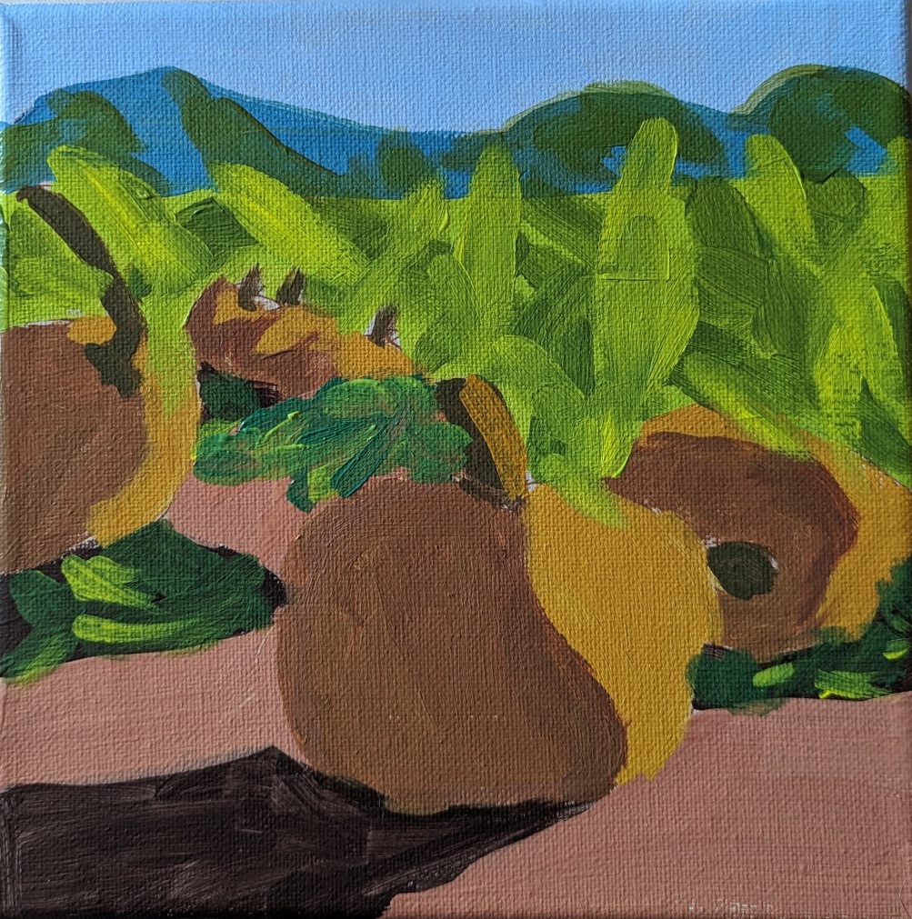 Pumpkin Harvest.. Work in Progress #2 October 14, 2023October 12, 2023 | cathmary1030 After I completed today’s work, I realized that the center pumpkins were all in a line, and I decided I didn’t like that. Bad composition. (See left image.) So I removed one of the pumpkins, and I think it looks a bit more natural. Share this: Click to share on X (Opens in new window) X Click to share on Facebook (Opens in new window) Facebook Like Loading... Related