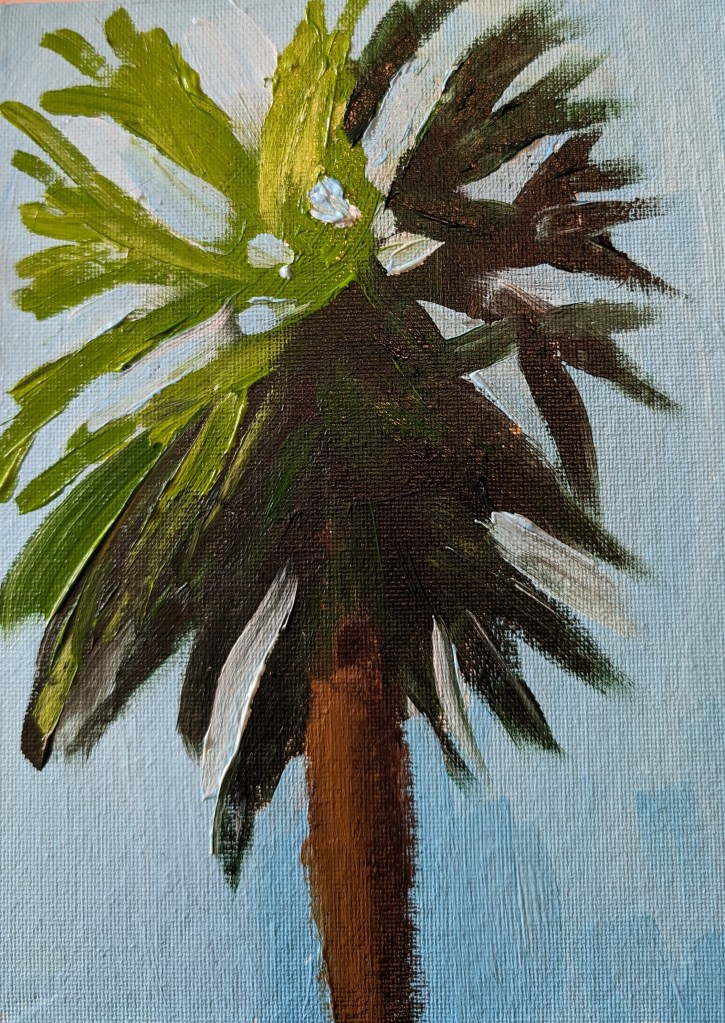 This palm tree is my effort from the online class at Kara Bullock Art called “Terrific Trees” class by Kim VanDerHoek.