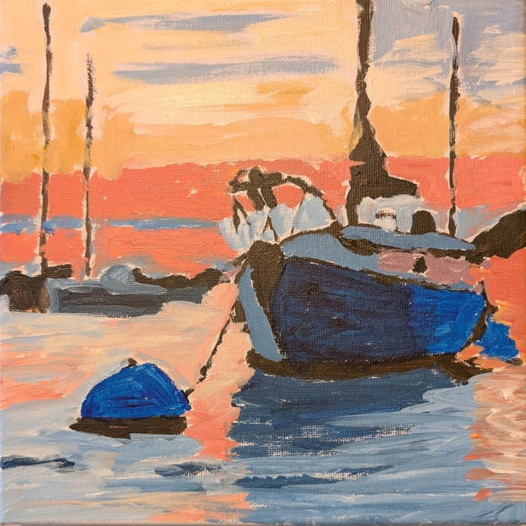 I painted this on an 8×8 canvas, based on a reference photo I got from a Fresh Paint lesson (by Ali Kay Studios). I mostly dry-brushed this work, and did not follow the Fresh Paint lesson at all, preferring to use the reference photo.