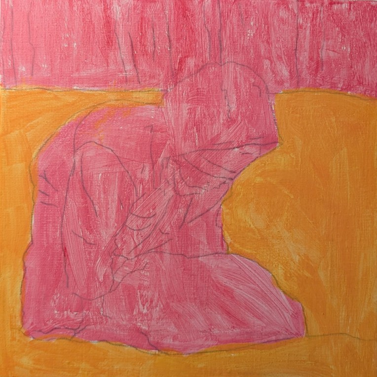 So, I’ve traced the provided 8×8 template on to an 8×8 canvas, and I’ve painted the magenta red, and the orange.