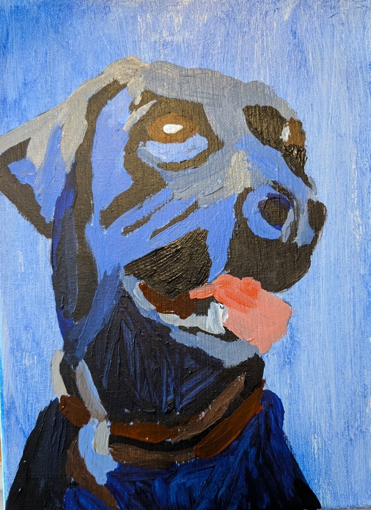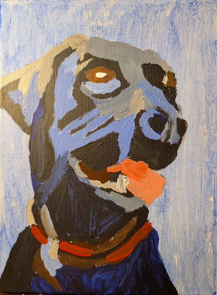 The painting is based off a reference photo on Ali Kay‘s Fresh Paint site, and I turned up the saturation on the photo to see colors other than black: dark blue, some deep violet, and some silvery gray.