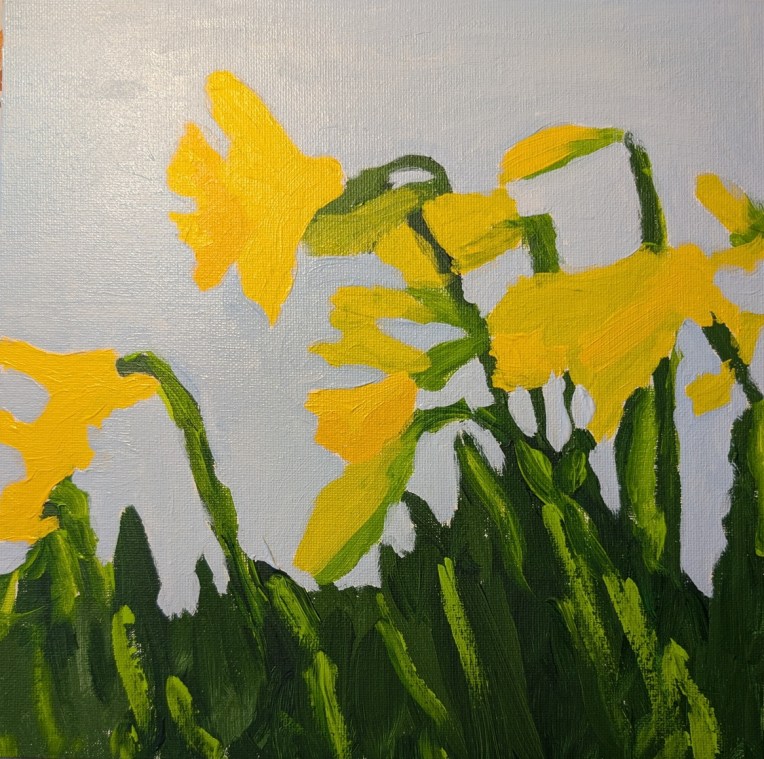 Last time I said I was undecided about how to finish this daffodil painting from Acrylic University‘s “Bloom with Jed” paint-along video class.
