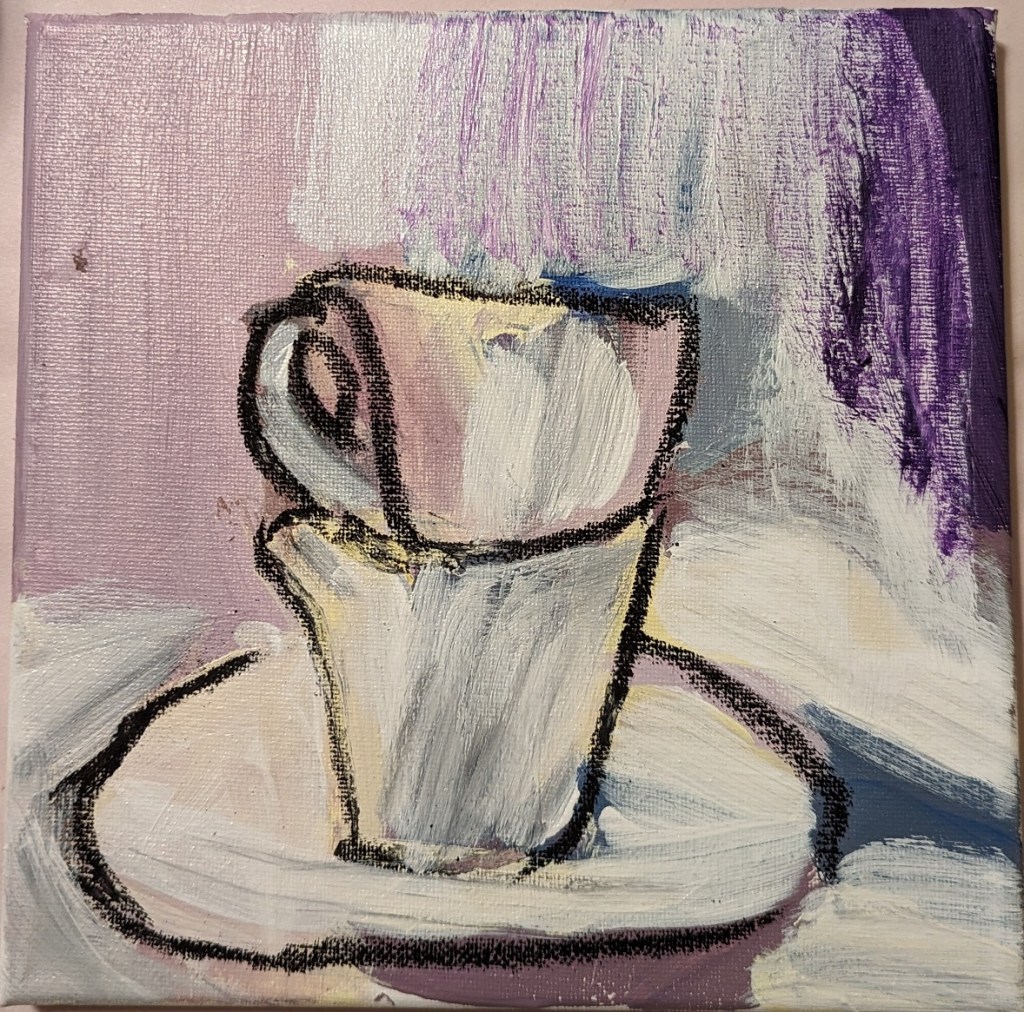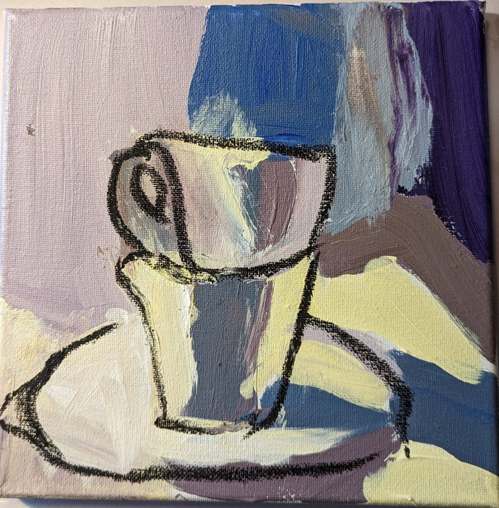 So, when I saw the reprint of “White Cups” in How to Paint Fast, Loose and Bold: Simple Techniques for Expressive Painting, I thought I would give it a try. Can I come close to matching these colors?