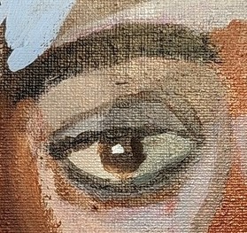Slivka used Raw Sienna and Cadmium Red for the skin; I used Raw Sienna and Red Oxide. For the clothing shadows, Slivka used a violet with white. I used Liquitex Basics Gray Blue with some white.