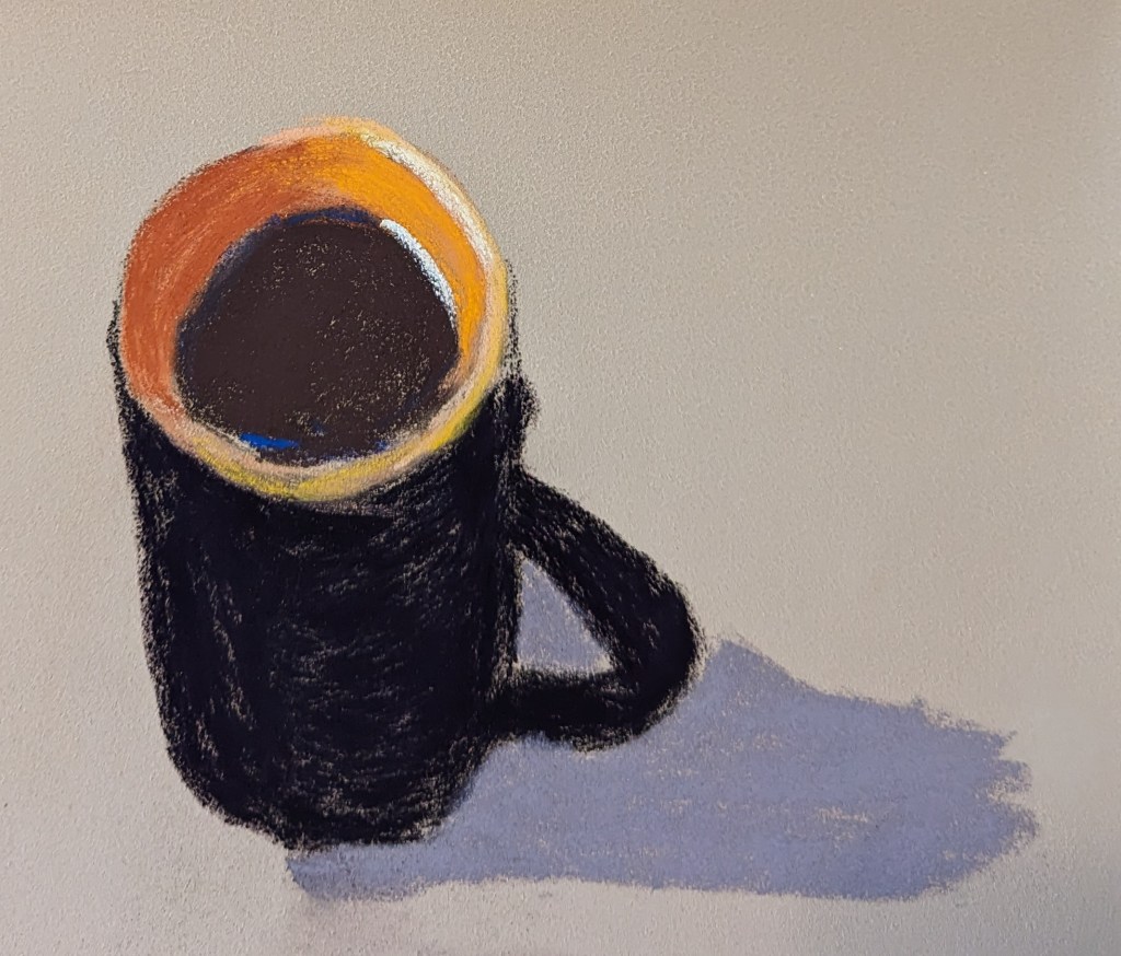 Karen Margulis offered her Patreon members a demo of how to paint shiny objects. Using her reference photo — but modifying it for my own purposes — I did this study on Colourfix Original (Soft Umber color), and used both hard and soft pastels.