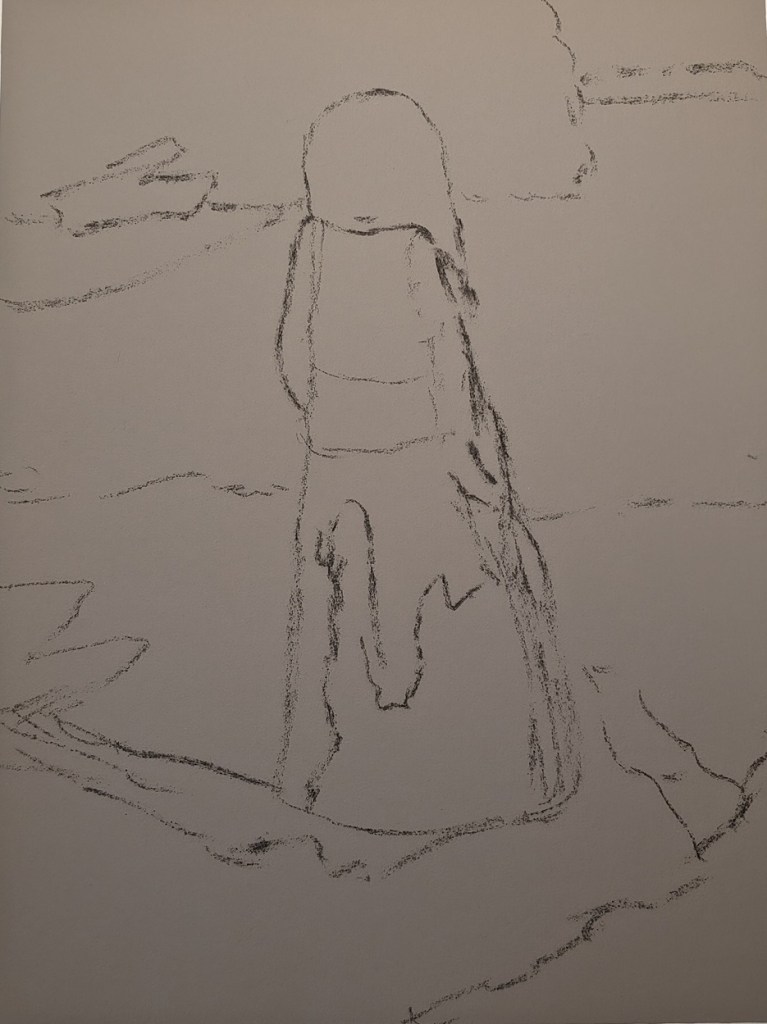 Couldn’t resist trying out this figure using soft pastels on ArtSpectrum Colourfix sanded paper (in a tan color).