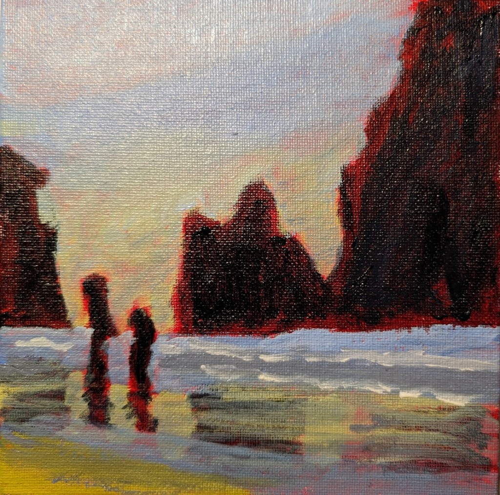 In his book there’s a photo of his painting of an L.A. sunset, which I liked and decided to try to do myself. 12×12 canvas panel.