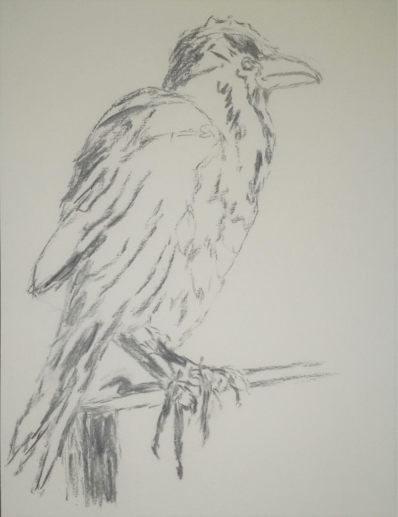 This bird was painted on a 11×14 canvas which I toned with Blick Studio neutral gray — but I should have added at least one layer of gesso. (Cheap “pre-gessoed” canvases are less and less appealing to me.)