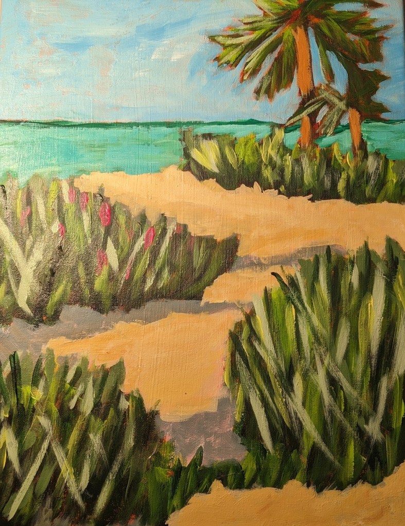I repainted the sky from Cerulean to Light Blue Permanent (Liquitex brand) mixed with additional Titanium White. I may repaint the ocean, and get the horizon line straighter; regardless, this exercise was just a lot of fun!