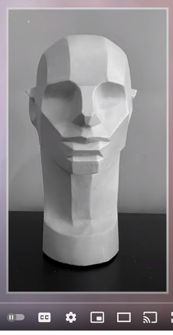 Instead, I found a video on YouTube that walks you through drawing the “Loomis Head” and converting it (for lack of a better term) to a planar head (what the artist calls the “memorized Asaro head”). After watching that, I drew the planar head on my 8×10 canvas with willow charcoal.