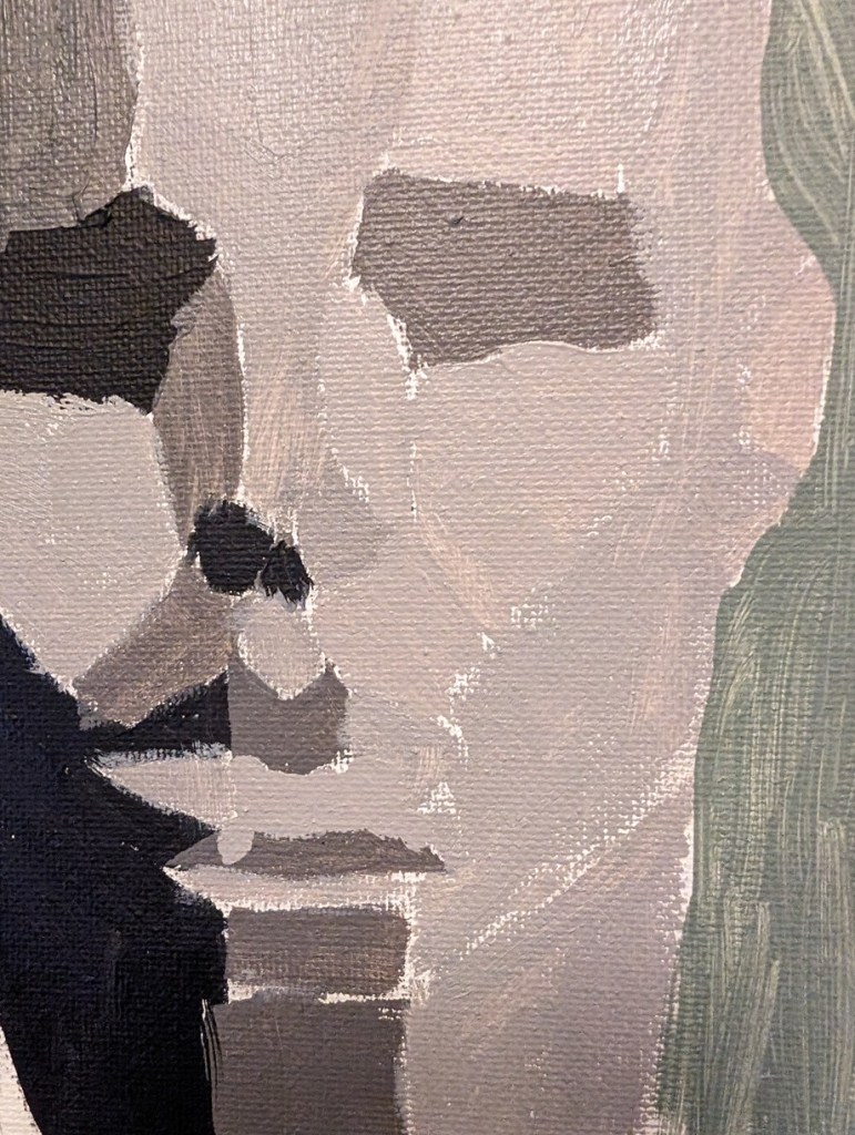 Below is a copy of the reference photo I used to paint, as well as a close-up of my value changes. In some cases like the upper lip, the value change is too abrupt, while in other cases there’s not enough of a value change. I’ll have to keep practicing.