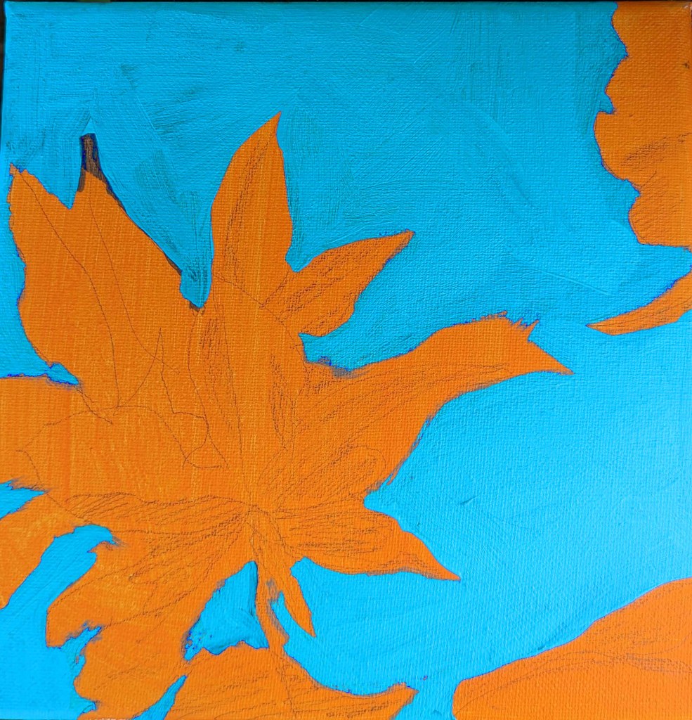 One more study I’ve done in the Adventures in Acrylic class. I did not do the fluorescent orange spray paint, and this time, instead of using my Perinone Orange (a close substitute), I went with Liquitex’s Cad-Free Orange paint, more soothing to my eyes.