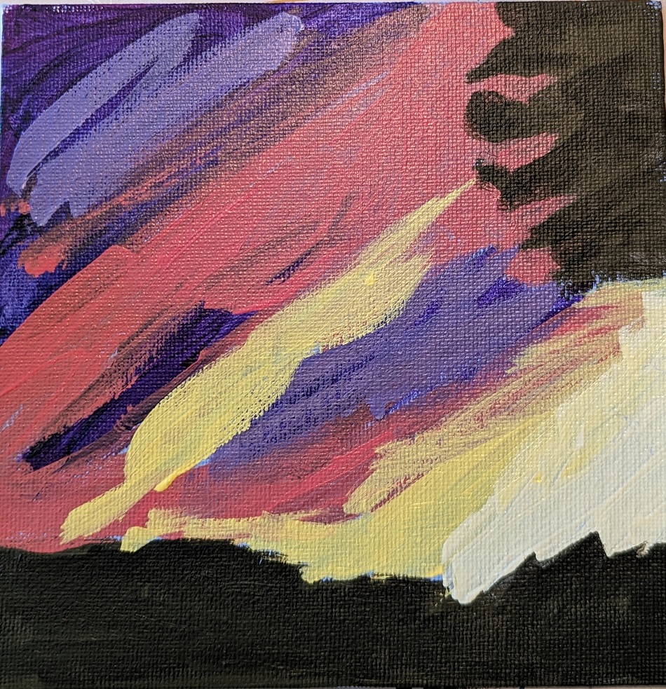 I felt the original image of the sky was too gray and blue, so I changed it up at bit. The sky was painted with Liquitex BASICS blue gray; the pink is Cadmium Red Medium Hue from Golden, and the Moon is Titanium White mixed with Hansa Yellow Light (PY 73).