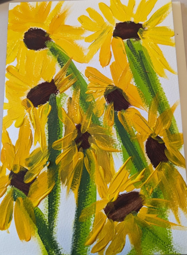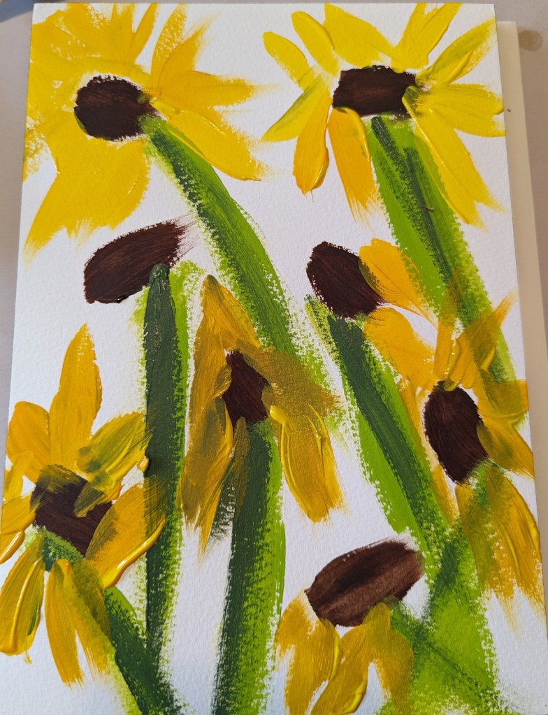 After painting the sunflowers in my two previous posts — as much as fun as it was — I wanted to make my flowers more artistic and less symbolic. I was reading blog posts from Karen Margulis, a pastel painter, and was inspired to up my game.