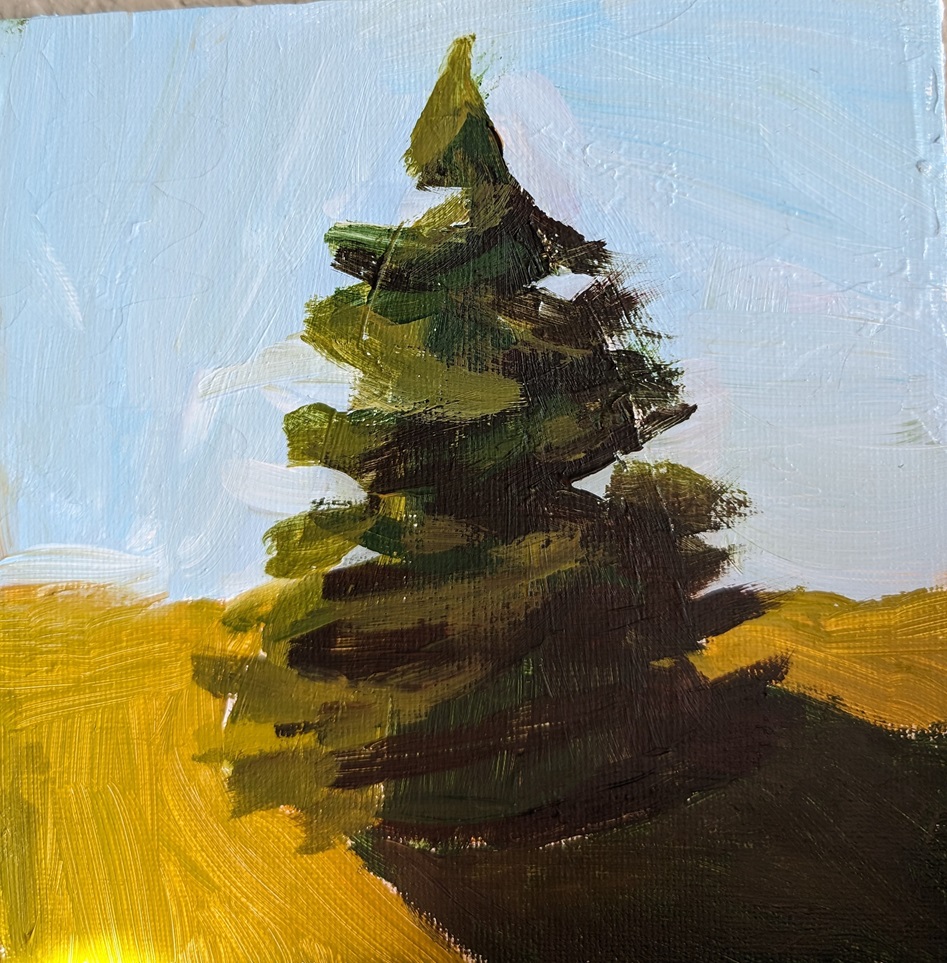 This was the third of the 3 mini practice paintings where we the students copy some of Jed’s paintings. In the next round, we copy bigger paintings which are more challenging. Then we move on to more detailed studies of subjects like color mixing, perspective, design/composition, etc. (All with practice paintings of course!)