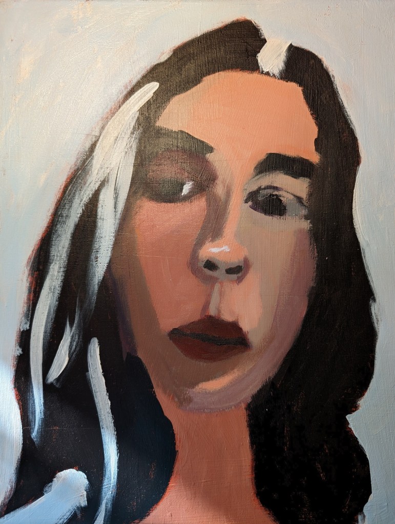 I did this charcoal work as a part of the 4th weekly exercise of Let’s Face It 2024. It was taught by Jim Bentley. (He does a demo of this face on his Instagram account.) For the class he used Bristol paper — which I believe is fairly smooth — and also carbon powder applied with brushes, none of which I had. I did my charcoal piece with some willow charcoal, compressed charcoal sticks, and blending stumps. And on Strathmore Charcoal paper, tinted green.