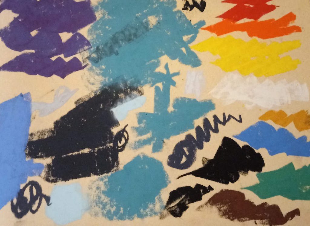 Underpainting — use the NuPastels again. but experiment with different colors.