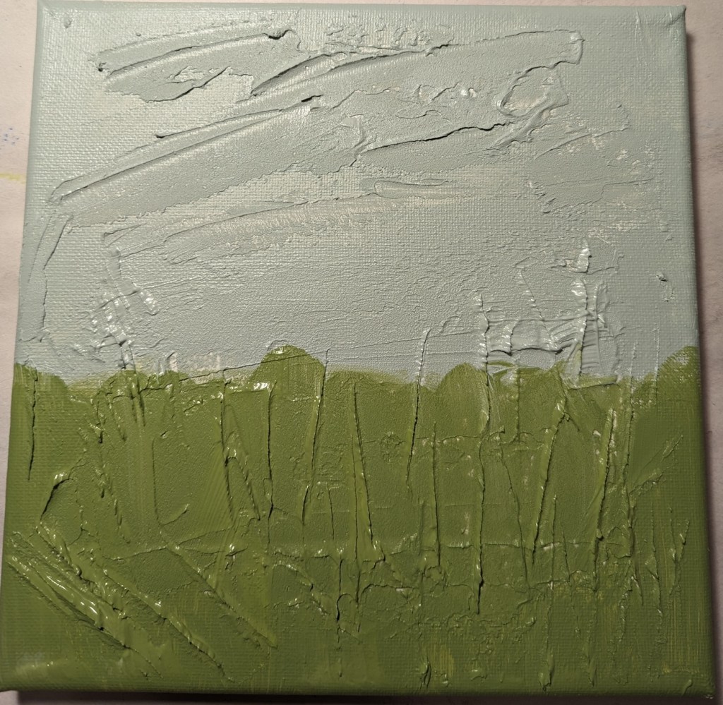 I used a gray green mixed with a yellow green for the grasses, and a gray blue for the sky area.