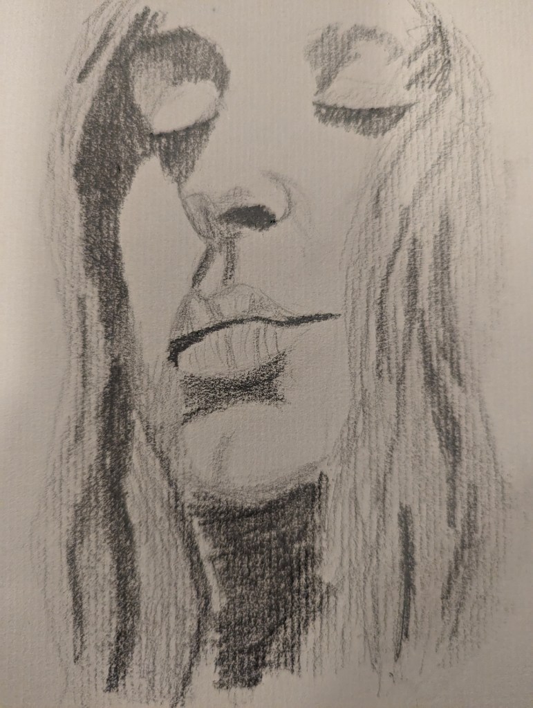 This work is based off an image by Sonam Prajapati from Pixabay. It was done in graphite, willow charcoal, and white charcoal. I used white paper, and toned it first.