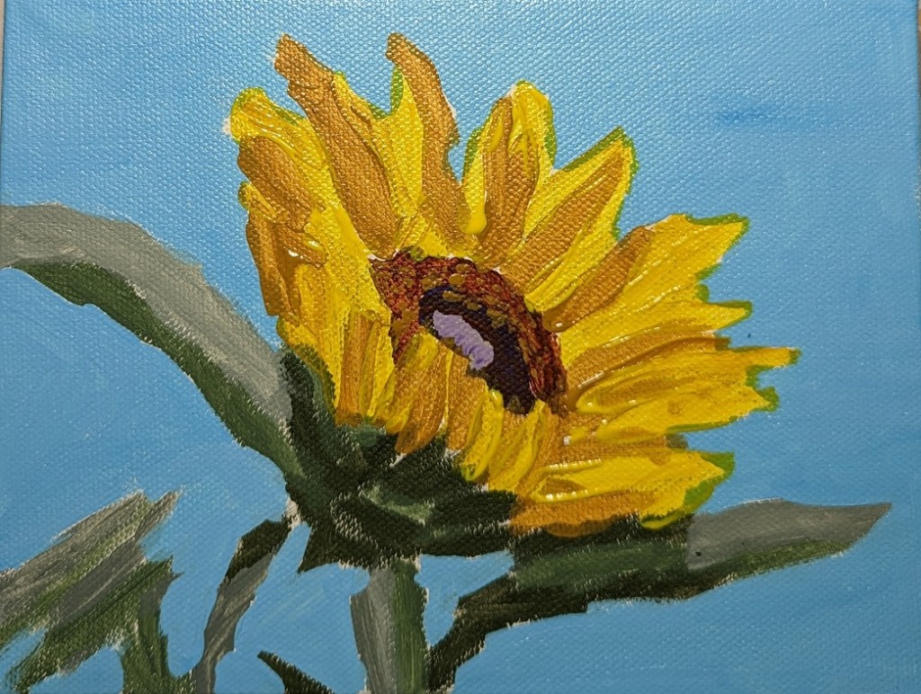 I used Yellow Ochre for the shaded parts of the petals, and Liquitex Soft Body Yellow Azo Med (PY 74) for the brighter parts of the petals. The yellow is fairly transparent, so I deliberately wanted to leave brush marks to give some additional definition to the petals.