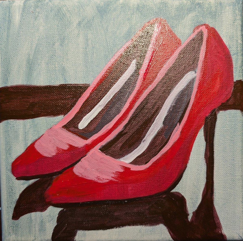 Once upon a time, I had a pair of red shoes like this. My 8×8 painting is based on a photo by Emily Pottiger on Unsplash. I kept my palette limited.