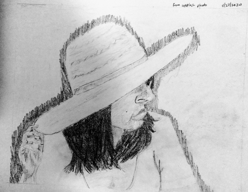 This drawing is based off a photo I found on Unsplash. I need to learn how to draw hair!