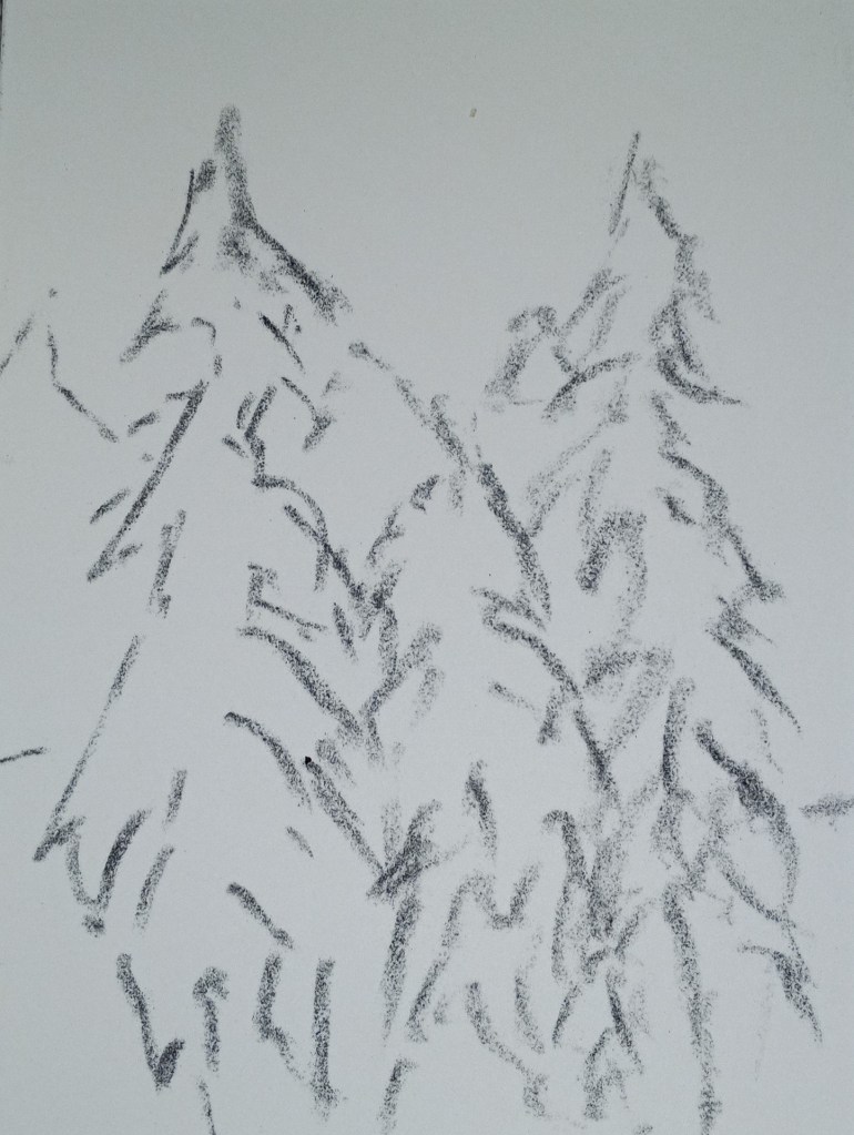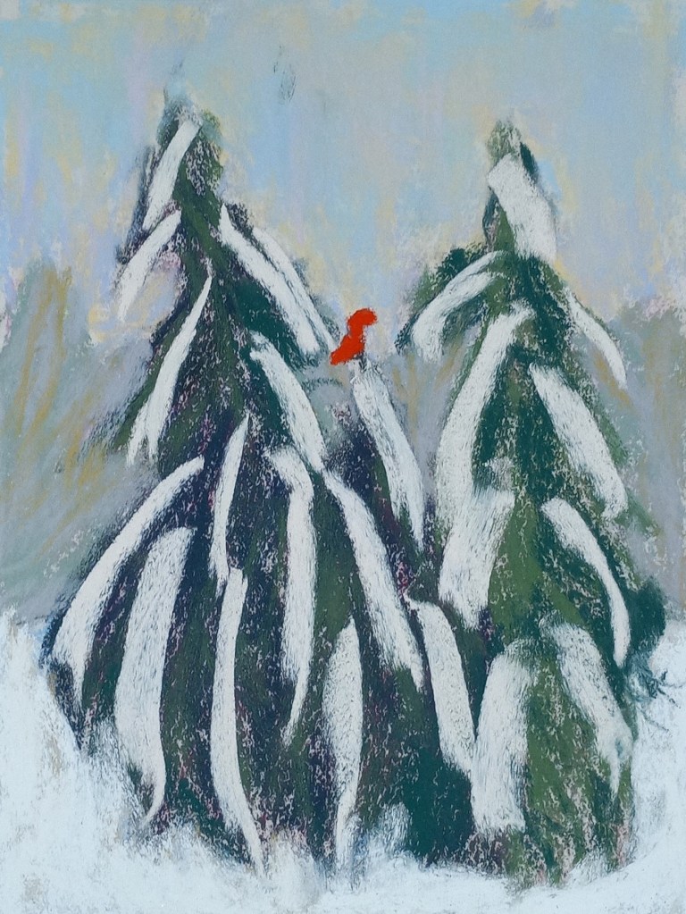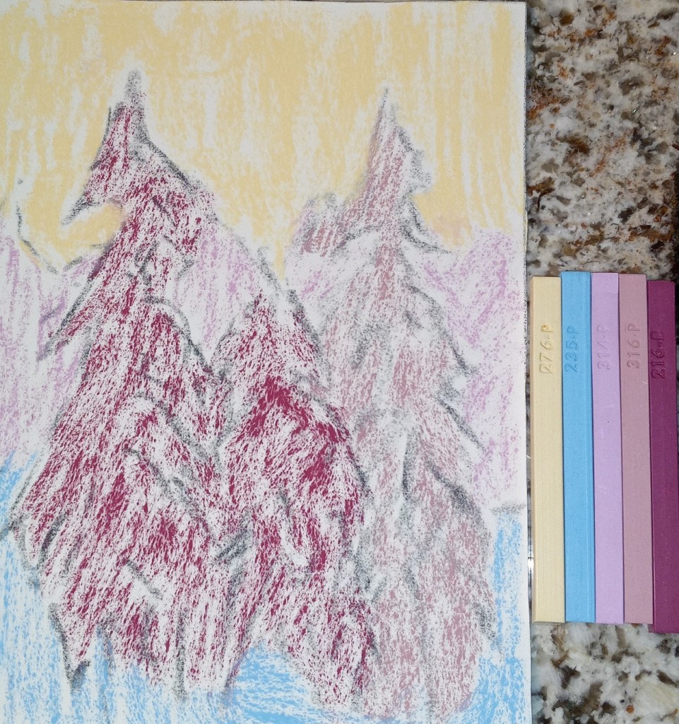 This study was inspired by an image by Yann Allegre on Unsplash. I used the same pastels as I used for my previous effort, but I added a more detailed underpainting using NuPastels, after sketching the trees with vine charcoal.